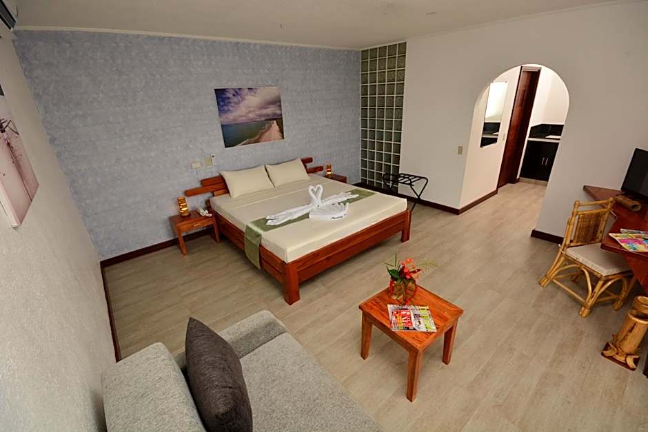 This bungalow has a Private veranda with sala set and hammock, soundproofing and flat-screen TV. own kitchenette.